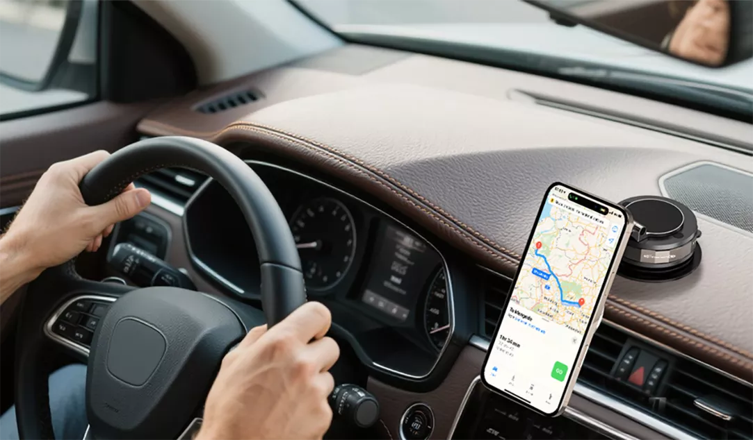 W końcu uchwyt, który działa z moim grubym etui OtterBox! Dołączone metalowe płytki idealnie się komponują. Koniec z szukaniem telefonu na światłach – wystarczy przyłożyć i gotowe.