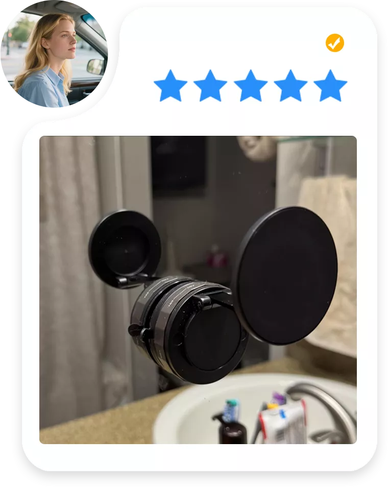 Zarówno montaż, jak i demontaż są niezwykle proste – zajmują dosłownie kilka sekund. Po dłuższym użytkowaniu przyssawka i magnes nadal trzymają mocno. Bardzo niezawodny uchwyt.