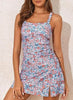 Dwuczęściowy zestaw tankini w stylu vintage:: Skirtini Tankini, Top Tankini z dołem od bikini, Marszczony Top do pływania, Zestaw Tankini z kwadratowym dekoltem i rozcięciem z boku, Strój kąpielowy z odkrytymi plecami, Strój kąpielowy typu push-up z wyjmowanym miękkim wypełnieniem zapewnia doskonałe wsparcie i podkreśla kształty