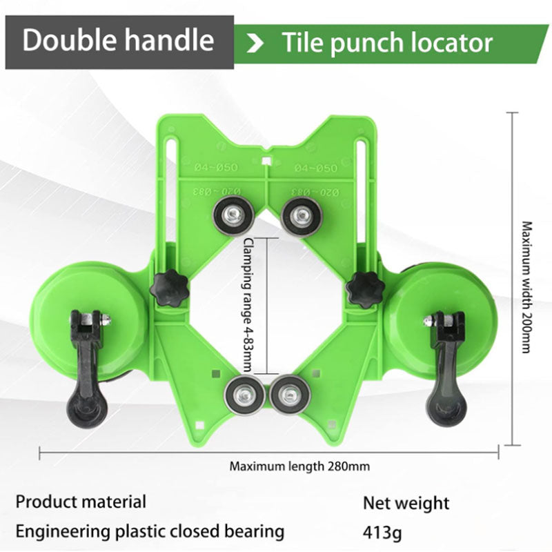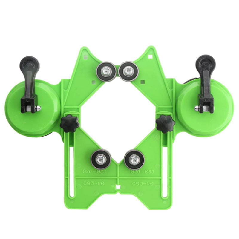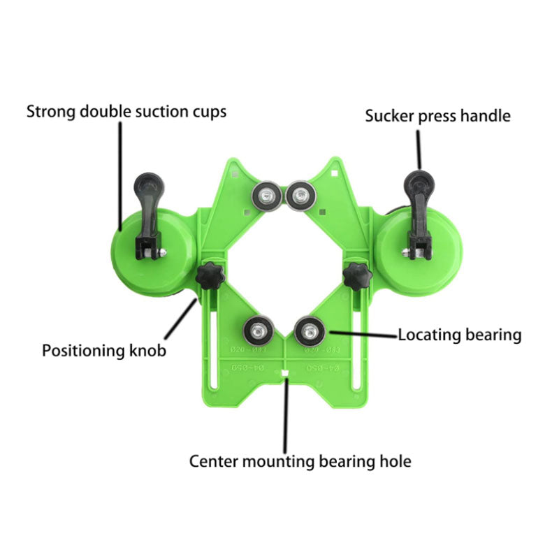 Silna moc ssania i dokładne pozycjonowanie- Ulepszona konstrukcja podwójnej przyssawki zapewnia mocniejsze ssanie niż pojedyncza przyssawka. Mocno przytrzymuje otwornicę na gładkich powierzchniach i skutecznie zabezpiecza ją w pozycji wiercenia. Precyzyjny system pozycjonowania pewnie chwyta otwornicę, zapobiegając poślizgowi i uszkodzeniom przedmiotów spowodowanym niewłaściwą obsługą. Regulacja w zakresie 4 mm-83 mm.