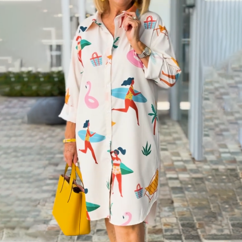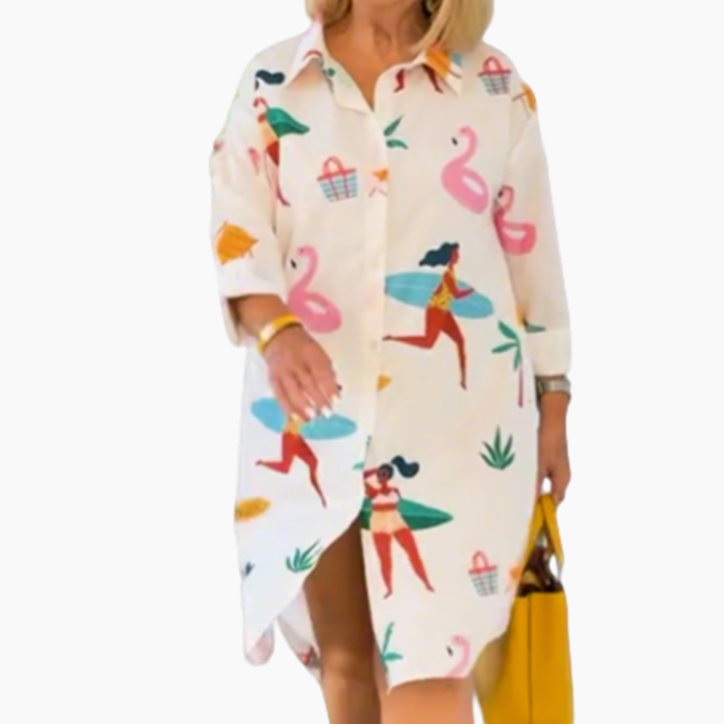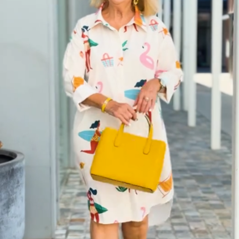 👗 KLASYCZNY KRÓJ KOSZULOWY Z GUZIKAMI – Ta sukienka midi zapinana na guziki to ponadczasowy, swobodny styl, który łatwo wystylizować. Idealna zarówno na co dzień, jak i na bardziej eleganckie okazje.