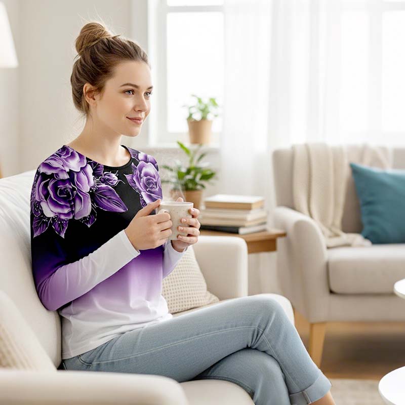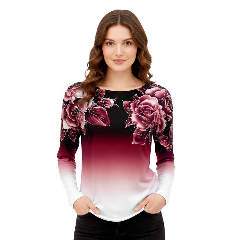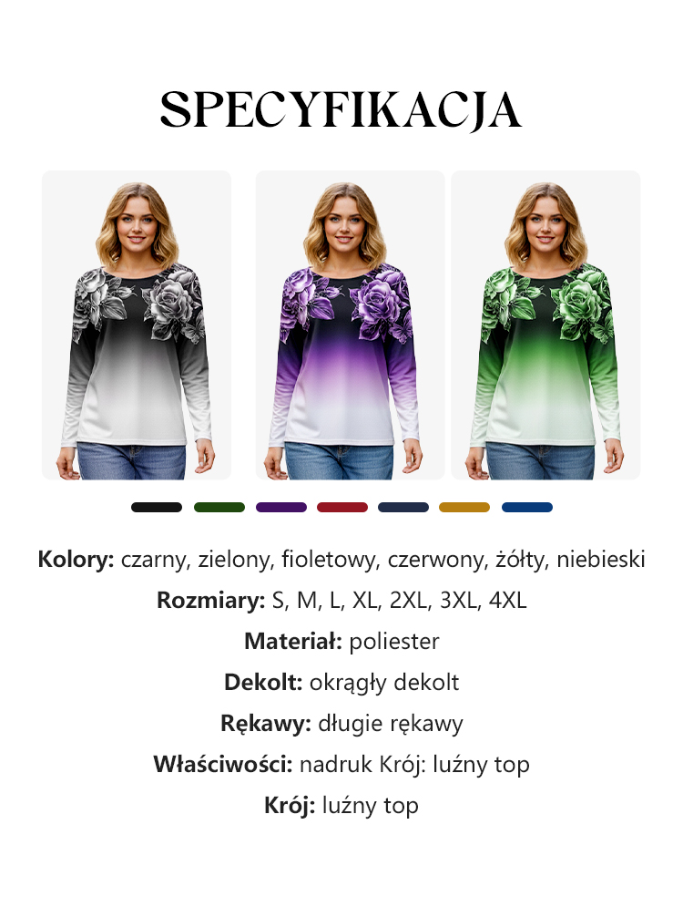 🔥👚Modna bluzka z długim rękawem i kwiatowym nadrukiem