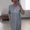 Pakiet zawiera: 1 * Damska luźna modna sukienka z okrągłym dekoltem w paski z kieszeniami