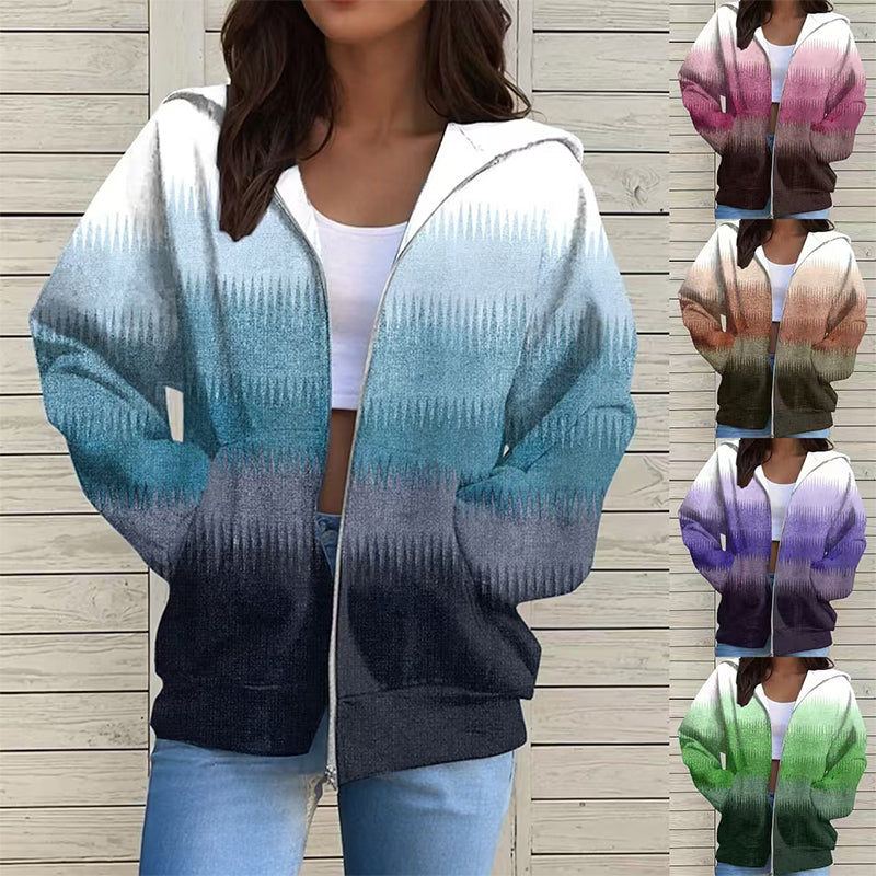 Idealny prezent: Modna bluza z kapturkiem z gradientowym nadrukiem sprawdzi się jako elegancki i praktyczny prezent dla przyjaciółki lub siostry.