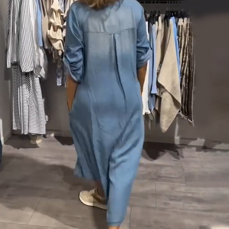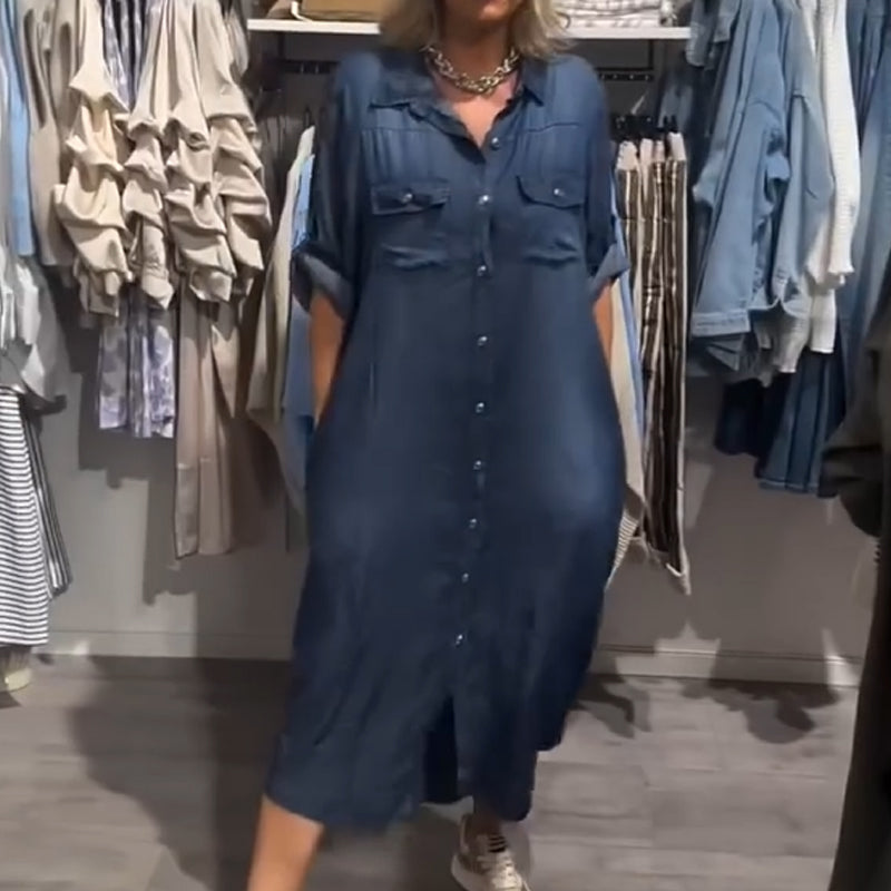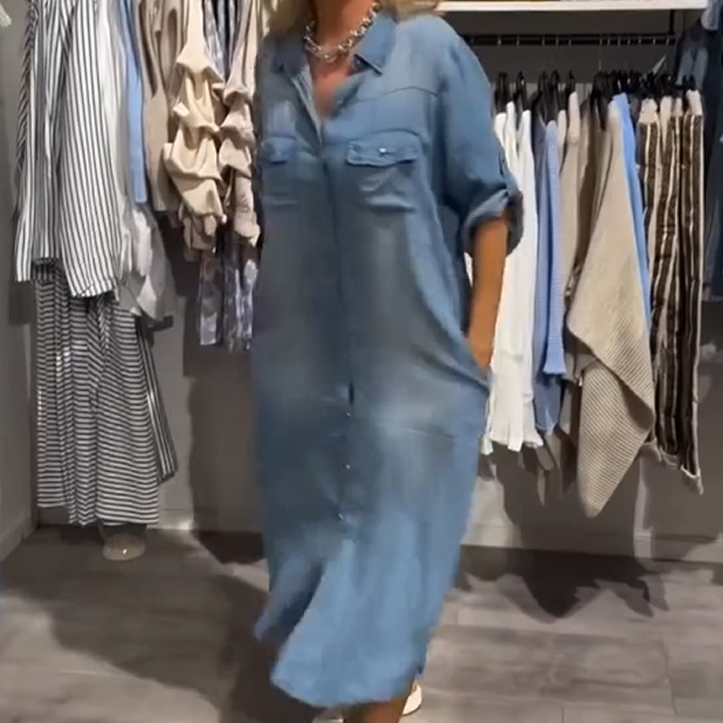 Damska codzienna sukienka koszulowa midi z denimu na guziki