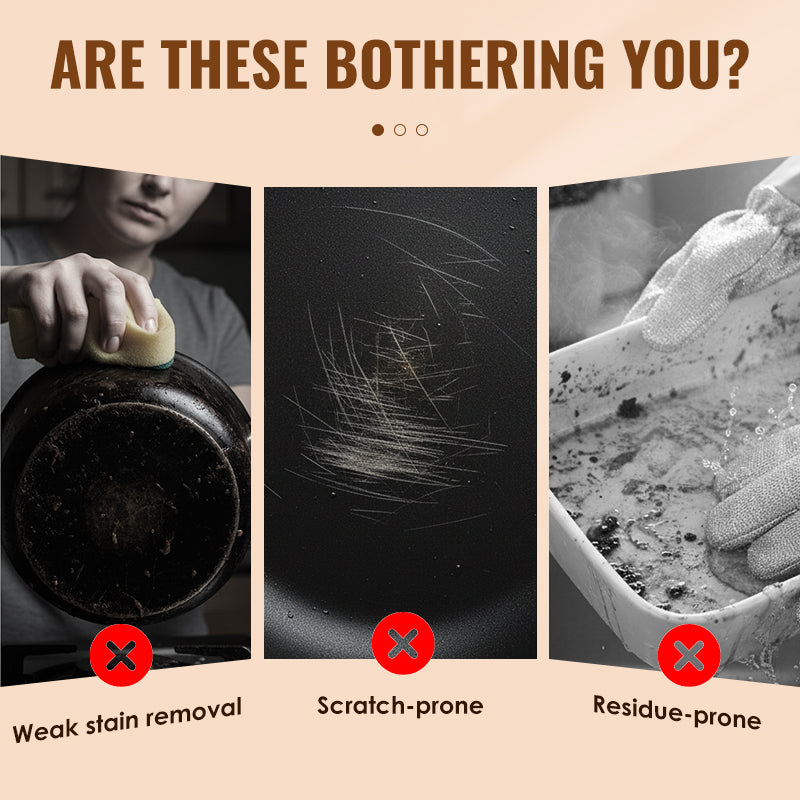 Bez wysiłku usuwa przypalony tłuszcz, zaschnięte resztki i trudne zabrudzenia z garnków oraz patelni — i to bez rysowania powierzchni. Podwójne działanie sprawia, że sprzątanie jest szybsze i łatwiejsze.
