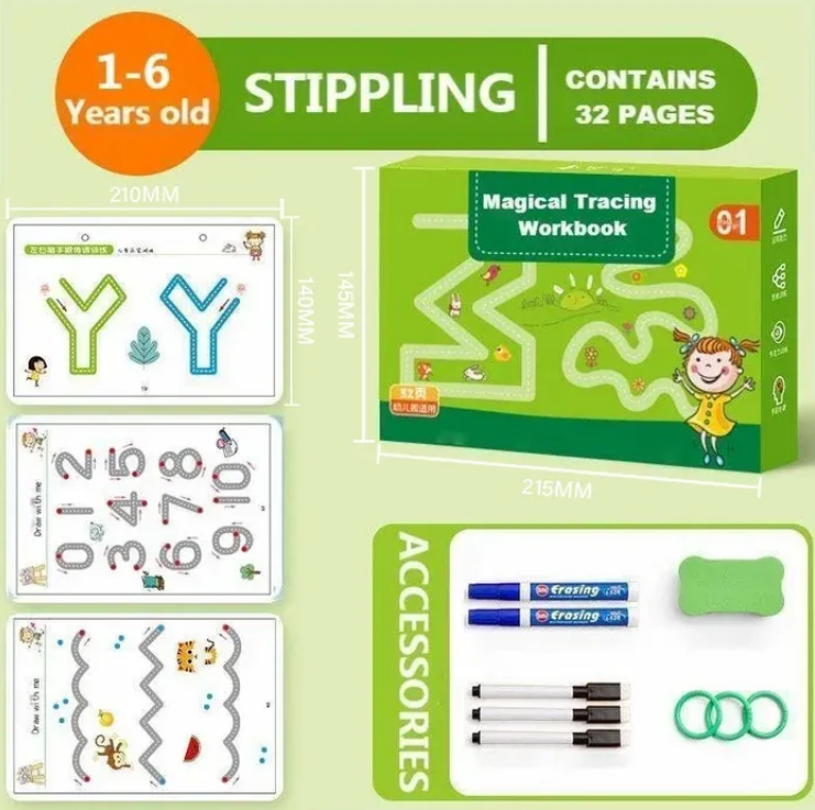 🎉Zestaw zeszytów ćwiczeń Magical Tracing-idealny dla dzieci!