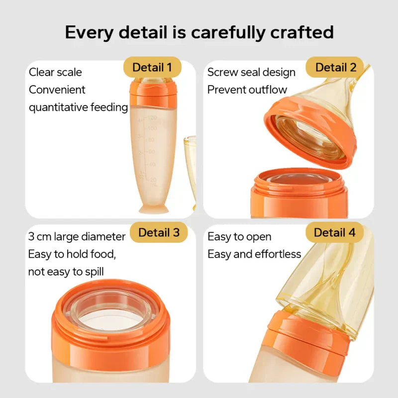 Zawartość opakowania: 2/4 × Silikonowa butelka do karmienia z łyżeczką
