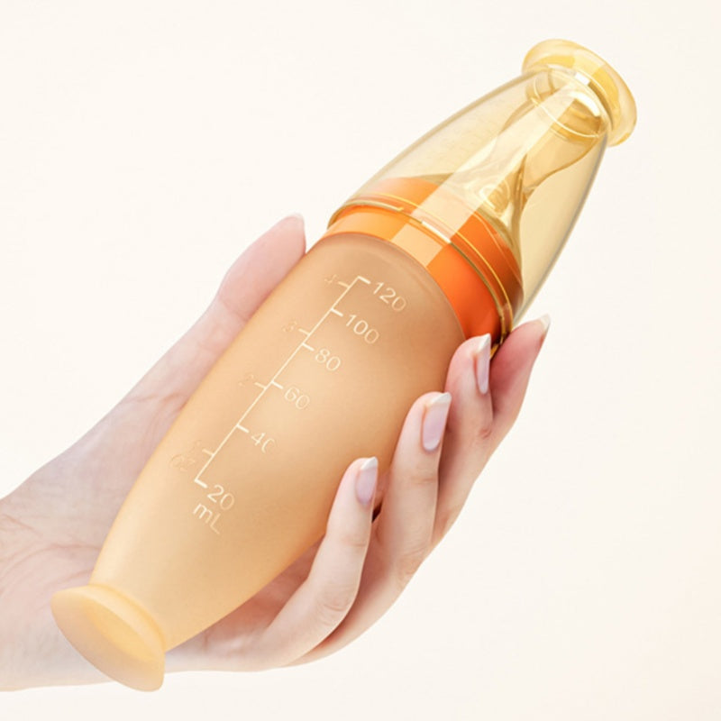 Spód buteleczki posiada przyssawkę, która mocno trzyma się stołu, zapobiegając przewracaniu i rozlewaniu. Dzięki temu karmienie jest bezpieczniejsze i bardziej higieniczne.