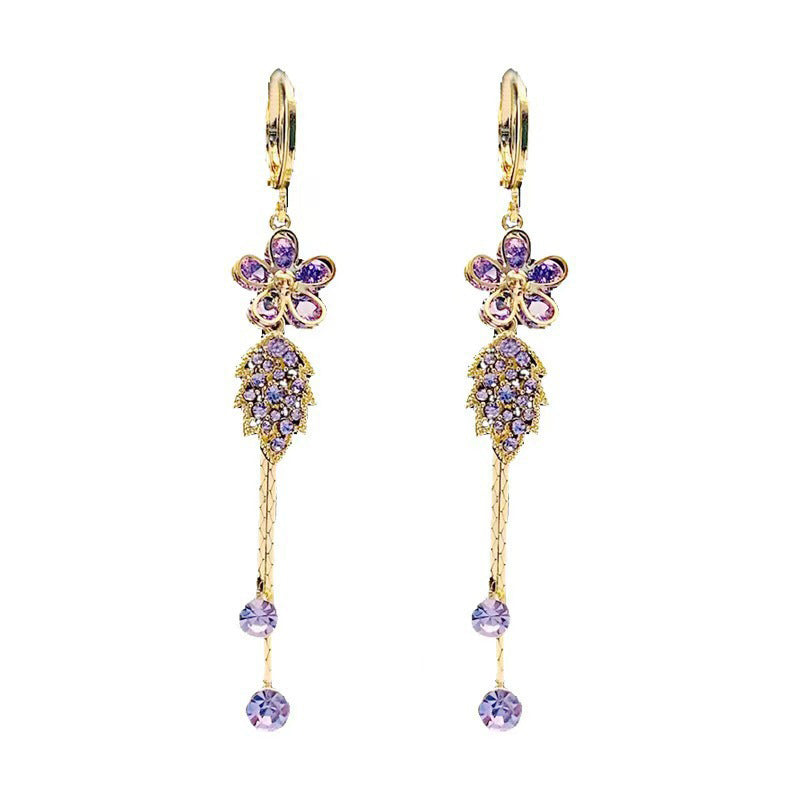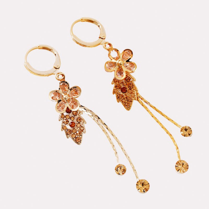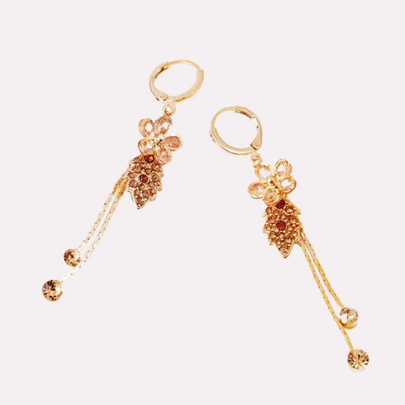 Kolczyki z syntetycznymi diamentami i frędzlami w kwiatowy wzór