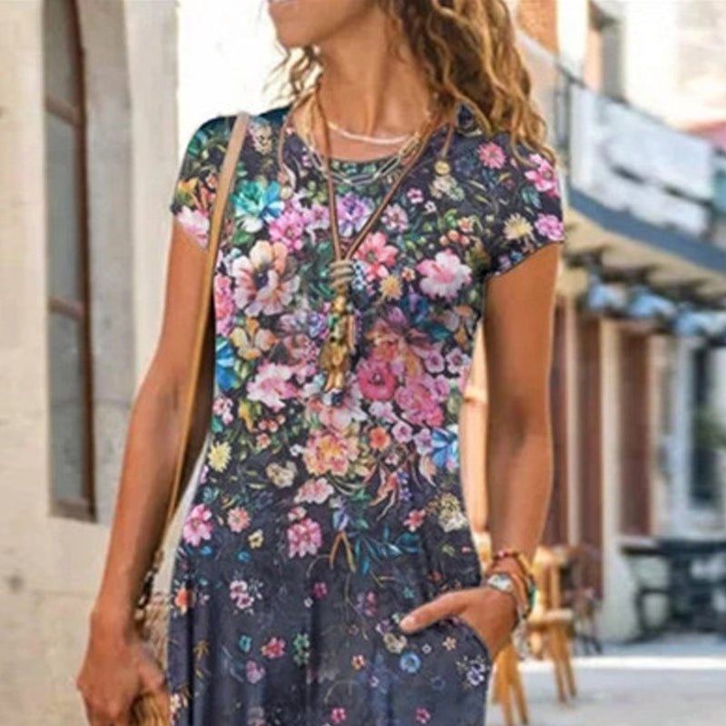 • Zestaw zawiera: 1 × Damska sukienka długa z krótkim rękawem i kwiatowym nadrukiem