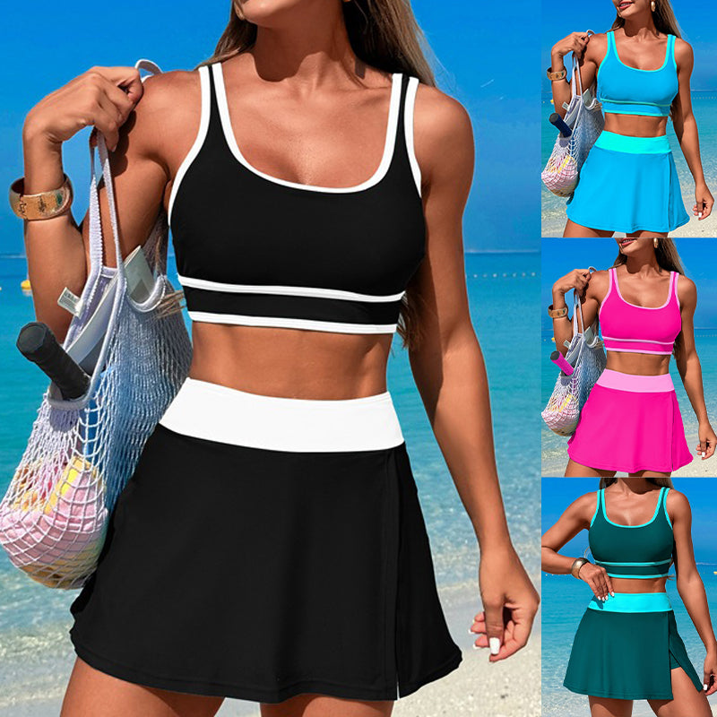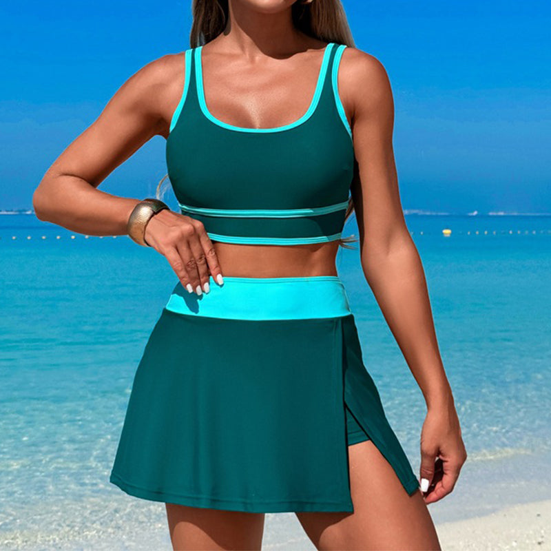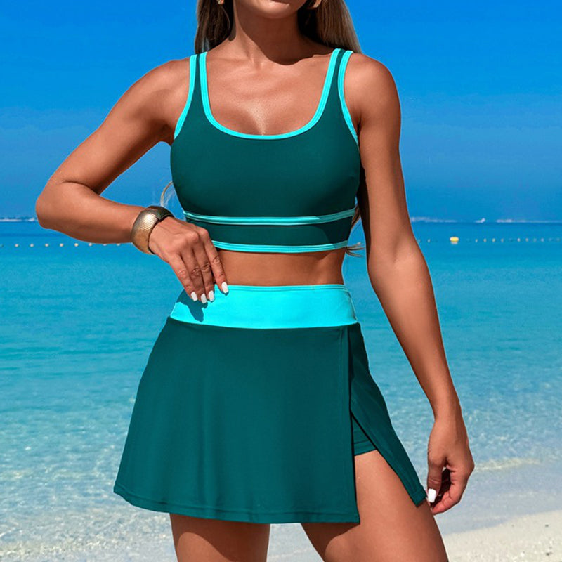 🔥👙Damski dwuczęściowy komplet ze spódniczką do pływania z wysokim stanem
