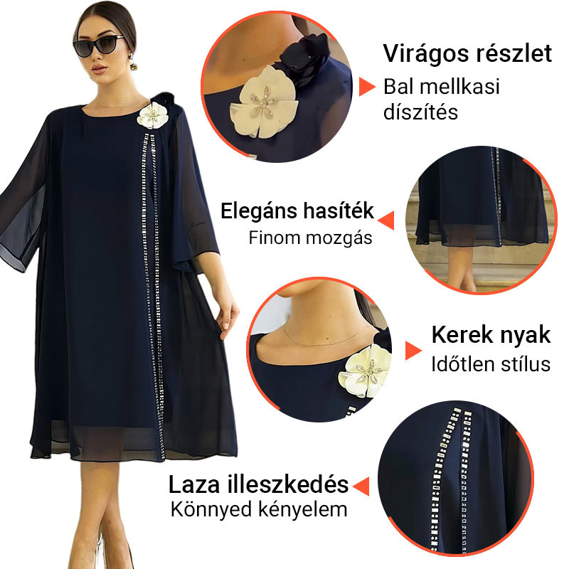 🌸✨【S-4XL】Női hálós ruha virágos díszítéssel