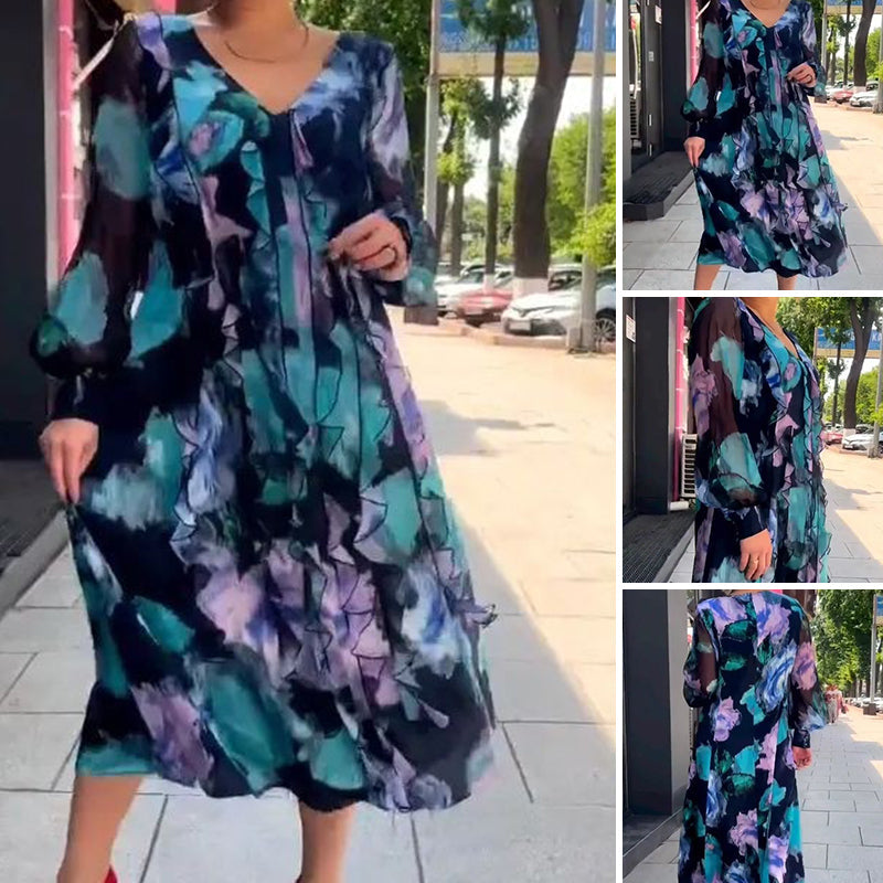 ELEGANCJA NA CO DZIEŃ:  Ta sukienka w kwiatowy wzór łączy swobodny styl z codzienną wygodą. Zabawne falbany sprawiają, że sukienka sprawdzi się zarówno na randce, jak i w biurze, zapewniając modny wygląd bez rezygnowania z praktyczności.