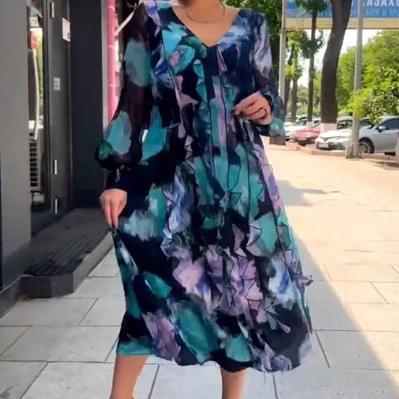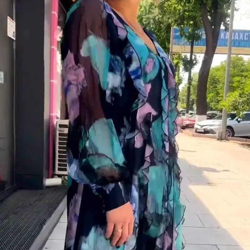 Pakiet zawiera:1* Damska falbaniasta sukienka w kwiaty z dekoltem w serek