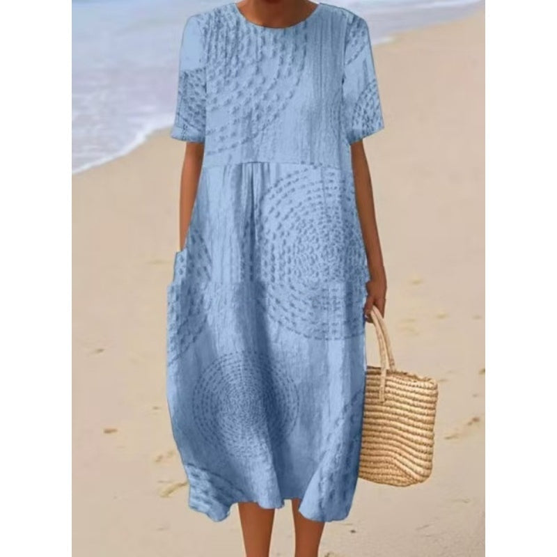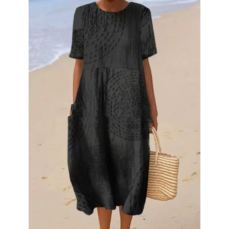 🌬️ Miękki i lekki materiał: Wykonana z miękkiej i oddychającej tkaniny, ta sukienka utrzyma Cię chłodną i komfortową w gorące dni, jednocześnie podkreślając sylwetkę.